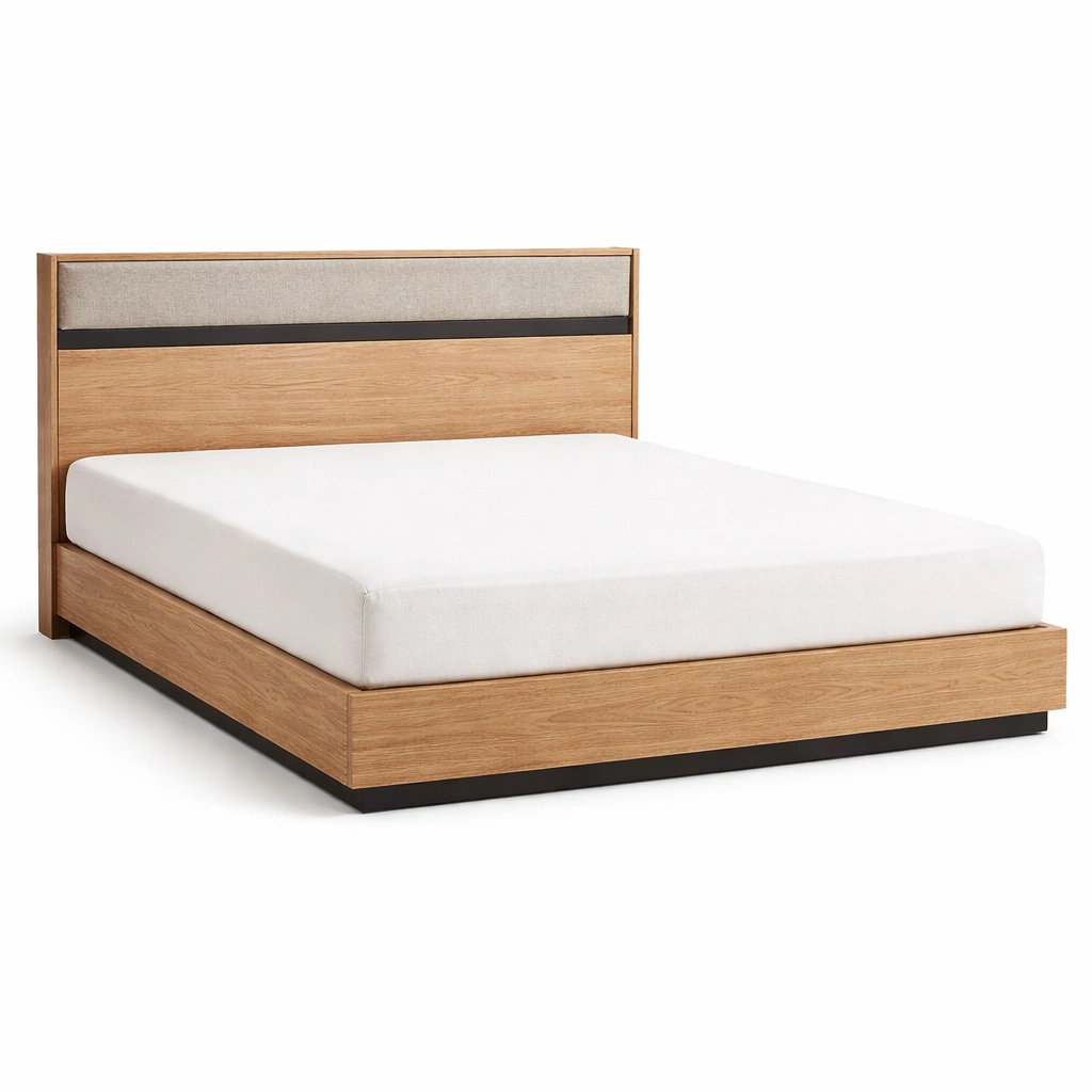 Estructura de cama tapizada de lino beige