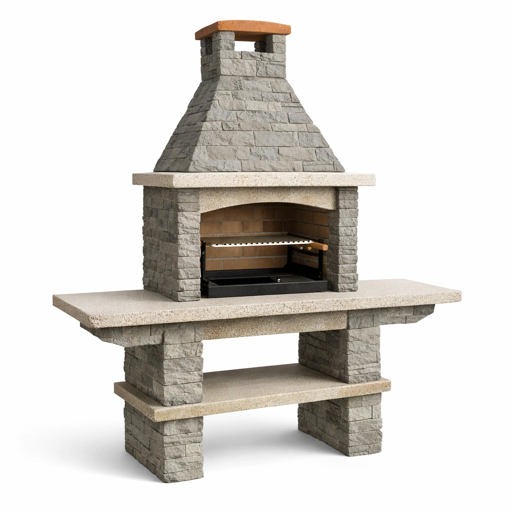 Material: Hormigón y ladrillo refractario en la estructura y zona de cocción.